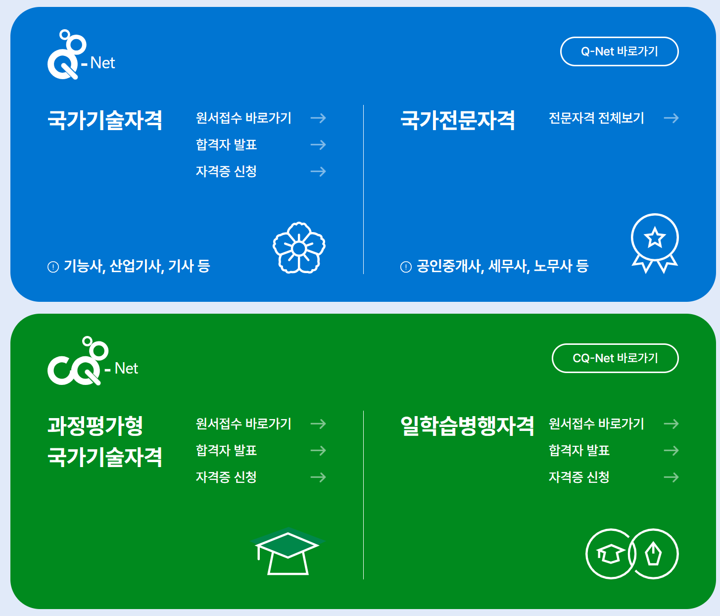- 한국산업인력공단: 정보처리기사, 정보처리기능사 등 국가기술자격증